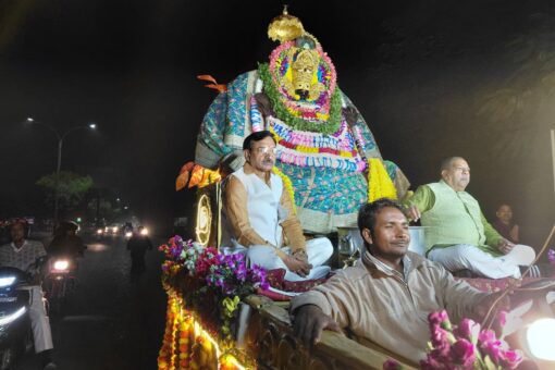 < > रुड़की। ( आयुष गुप्ता ) आज लालकुर्ती व आस-पास के क्षेत्रों में श्रीखाटू श्याम बाबा की भव्य शोभायात्रा निकाली गई। इस दौरान रथ पर खाटू श्याम जी की प्रतिमा को विराजमान शोभायात्रा निकाली गई, जिसमें बैंड बाजों की धुन पर बाबा श्याम के गीतों का गुण...